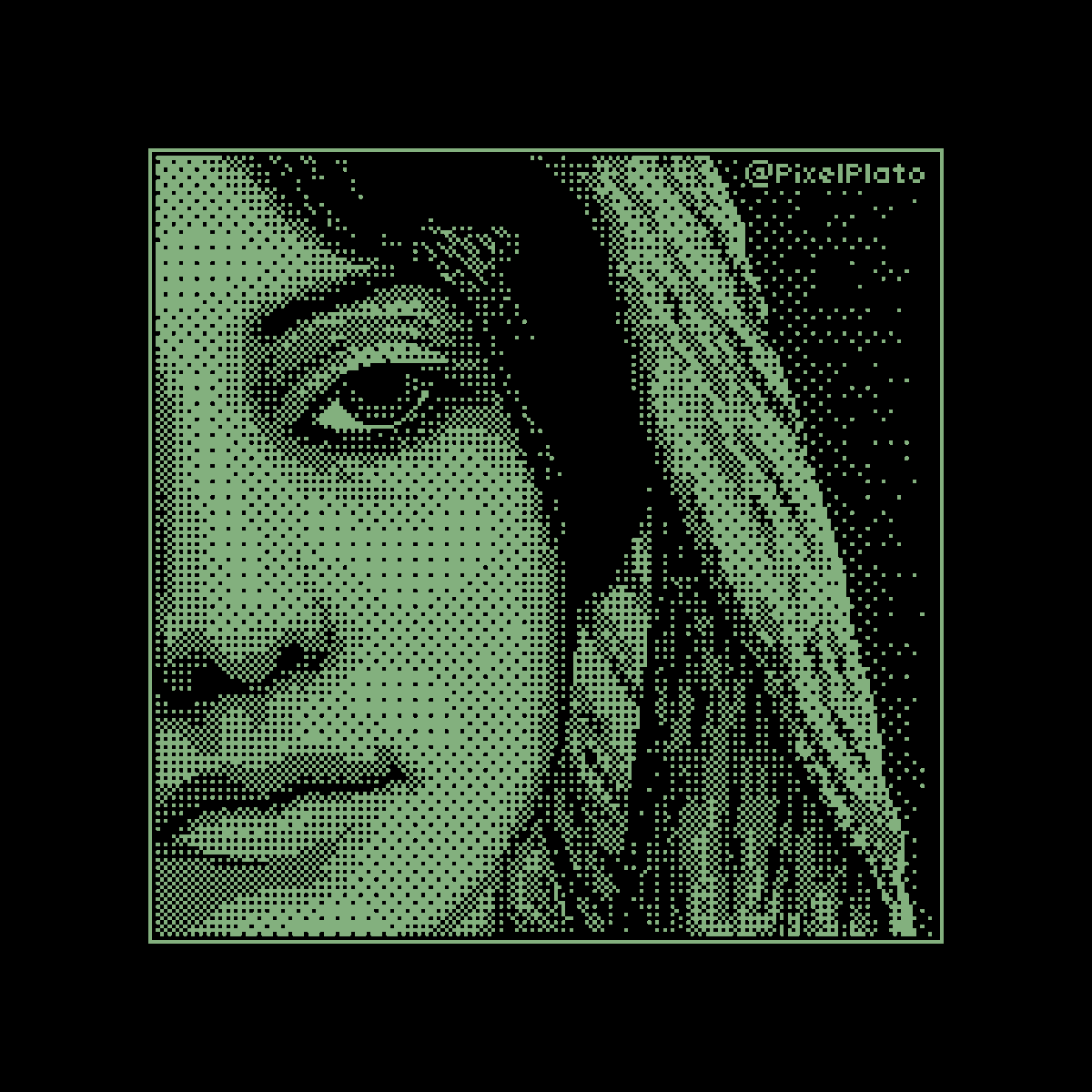 "Closer" My first portrait of a real person. I wanted to try something different, for a change. I'm back using 4 colors again! #pixelart #NataliePortman
