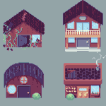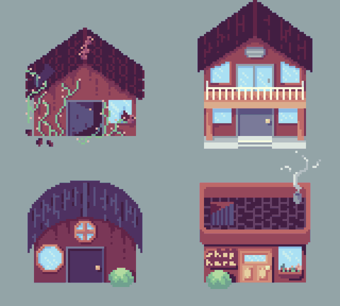 Some building shapes I’ve been playing around with to maybe integrate into some kind of tileset?? #pixelart #pixelartist