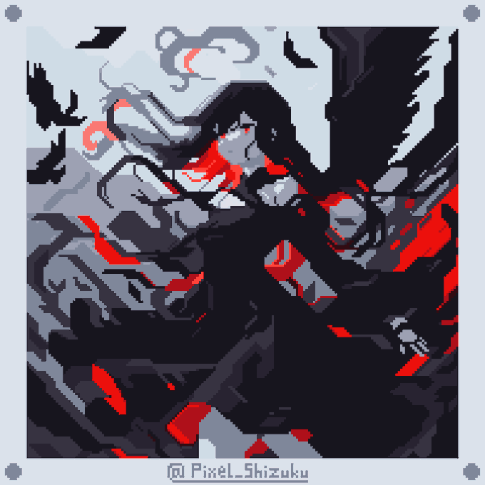 13 46 Produced its own OC 🥳🥳🥳 Red and Black Raven Maiden #pixelart #oc 23/04/20 19:15
