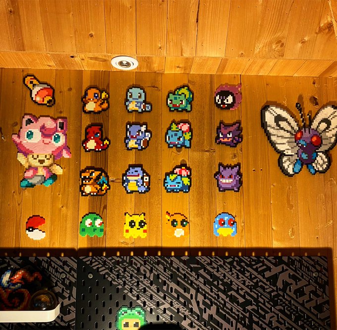 A mini Pokémon corner 💡 Sprites @butterberrycafe #perlerbeads #hamabeads #pixel #pixelart #pixelartist #8bit #pokemon #pokemongo #jigglypuff #charizard #gengar #butterfly