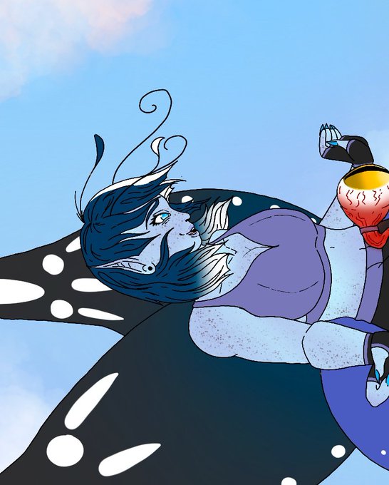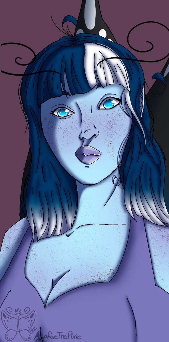 Ayafae has become blue thanks to magic candy...she's on the run anyways, so I guess this helps?? Figured she may as well chop her hair off too, so new & improved Ayafae! #dnd #art #dndart #artist #dungeonsanddragons #DnDcharacter #pixie #dnd5e #digitalart #Procreate #procreateart
