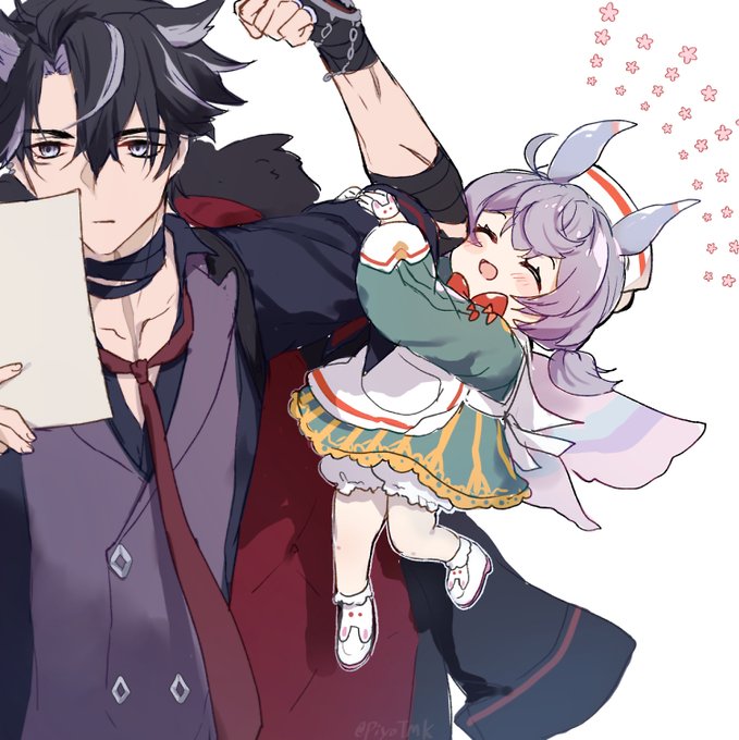 361 1582 リオセスリが予想外にムキムキだったので、シグウィンちゃんにぶら下がって貰った ※シグウィンの服は捏造 23/08/16 02:34