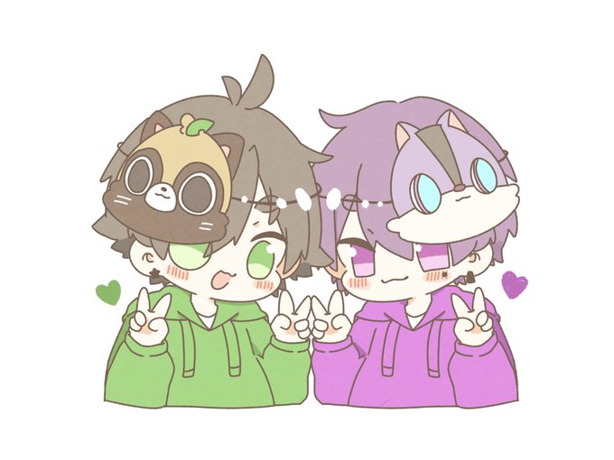 絶頂讃歌のサムネの奥にいた2人がかわいかったな…💚💜 #うらたぬ王国の美術館 #しまーと