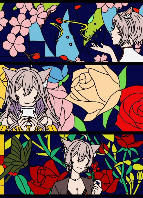 5 20 #狐乃お絵描き 1周年おめでとうございますっ! 記念としてステンドグラス風の絵に仕上げてみました。 23/03/05 07:41