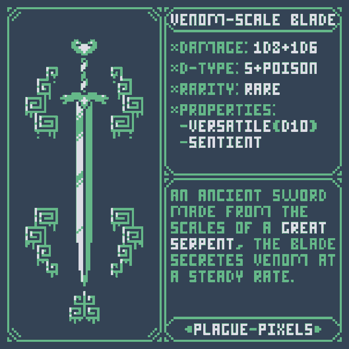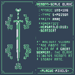 #Swordtember Day 03 - Poisonous "Venom-Scale Blade" An Ancient Sword Made from the scales of a Great Serpent, The blads secretes venom at a steady rate. #SwordDesign #dnd5e #pixelart