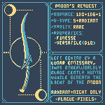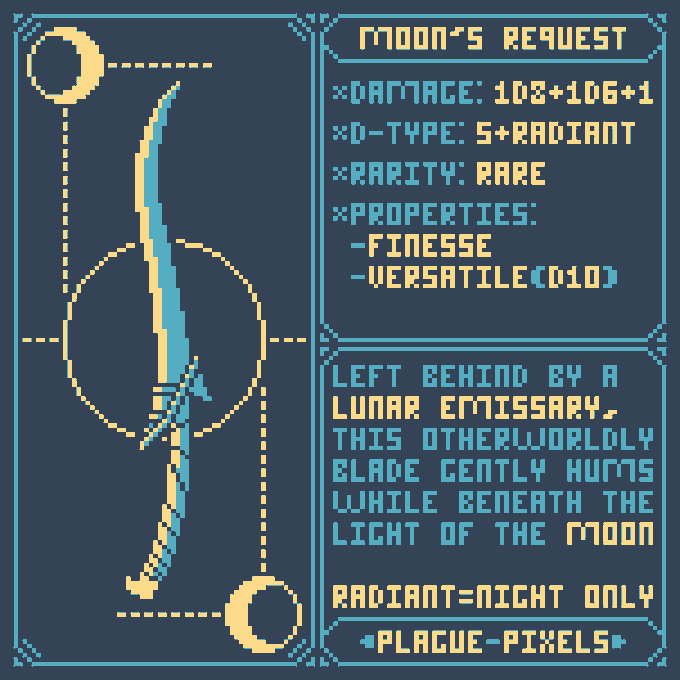 #Swordtember Day 06 - Moon "Moon's Request" "Left behind by a Lunar Emissary, this otherworldly blade gently hums while beneath the light of the Moon." #SwordDesign #dnd5e #pixelart