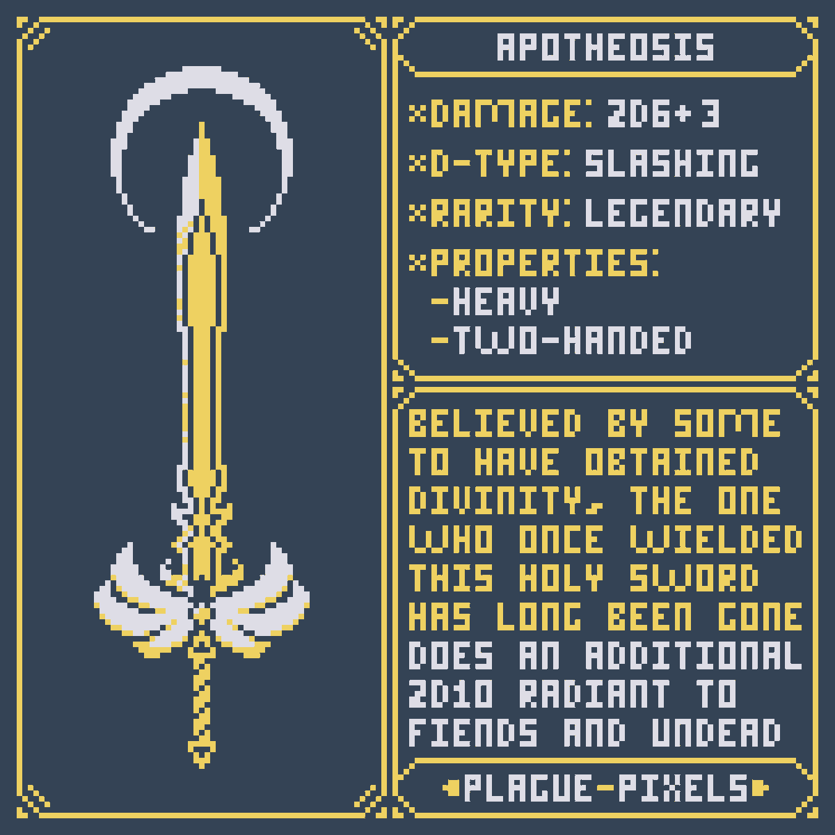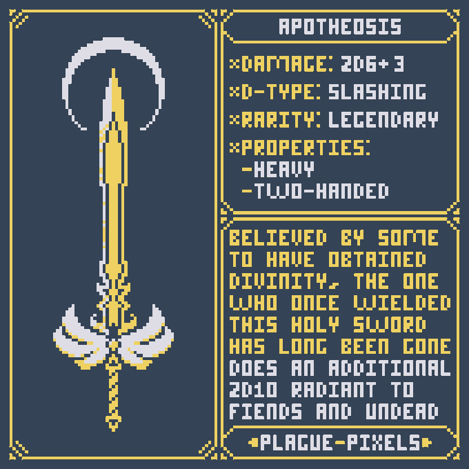 #Swordtember Day 09 - Divine Relic "Apotheosis" "Believed by some to have obtained divinity, the one who once wielded this holy sword has long since been gone." #SwordDesign #dnd5e #pixelart