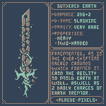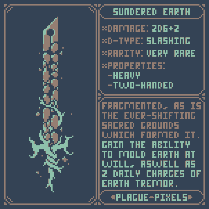 #Swordtember Day 17 + 18 - Fragmented & Nature "Sundered Earth" "Fragmented, as is the ever-shifting sacred grounds which formed it. Gain the ability to Mold Earth at will, aswell as 2 daily charges of Earth Tremor." #SwordDesign #dnd5e #pixelart