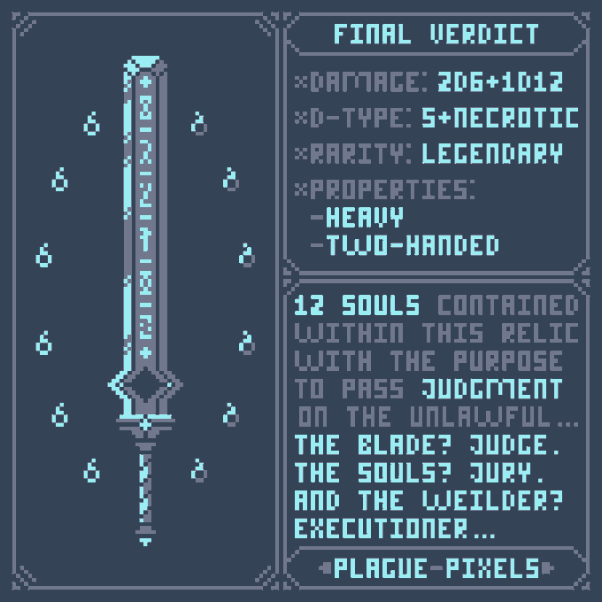 #Swordtember Day 19+ 20 - Justice & Many "Final Verdict" "12 souls contained within this relic with the purpose to pass judgment on the unlawful..." #SwordDesign #dnd5e #pixelart