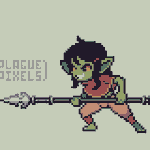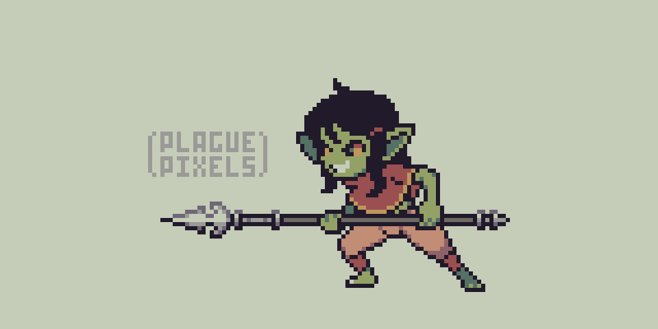 Apparently its #goblinweek, so here's a random goblin girl with a spear! #pixelart #ドット絵 #pixelartist