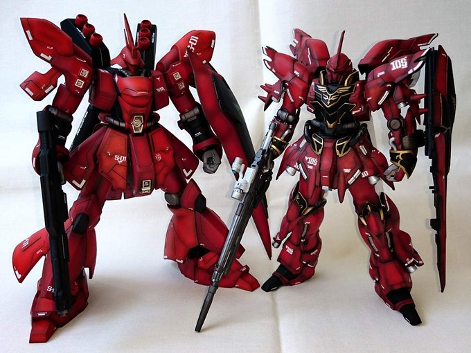 過去作だが 赤いMSかっこいいな 我が家のプラモは 手元に残らない傾向が強いです 2つとも後輩に奪われました。 先日のガーベラテトラは 今、先輩の家にいます。 #サザビー #シナンジュ #ガンプラ