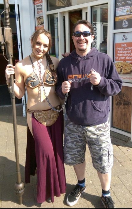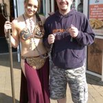 Meeting Princess Leia aka @Artyfakes Don't you dare say I'm Jabba the Hutt - I'm self conscious as it is! #StarWars #starwarscosplay #cosplay #princessleia
