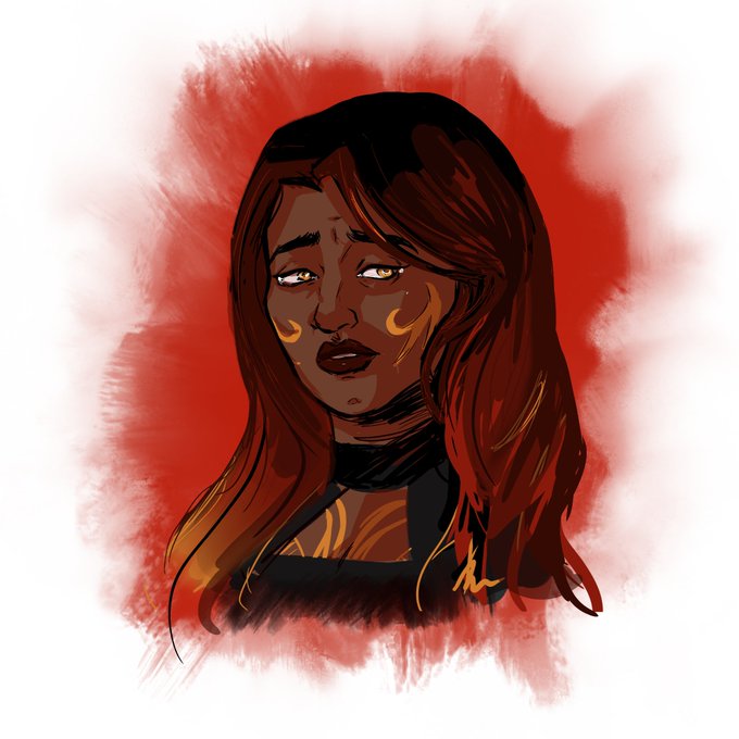 I pictured Fy'Ra Rai as stoic but with tears in the corner of her eyes & her hair becomes limp. Looking like extingished fire embers. A doodle of Fy'Ra Rai from Exandria Unlimited #crownkeepers crying... not related to last Critical Role ep👀 #CriticalRoleSpoiler #CriticalRoleArt