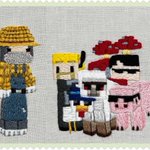 おんりーチャンとおらふくん見て縫い、その後みんなギューッとくっつけたくなって縫い、それ見てネコおじさんも縫いたくなり… 結果こうなりました(*≧∀≦*) #ドズル社アート #ドズってる #ぼんさん何してんすか #はよ見ろやあ #見るかもわからん #誰でも見れますねぇ #今回のネコおじ #手刺繍