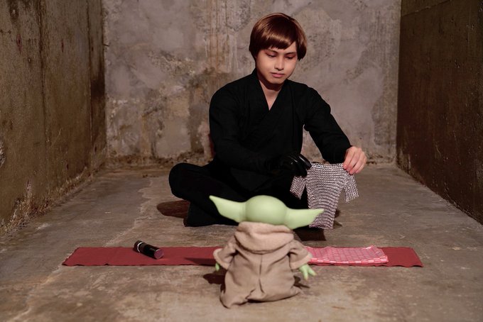 ⚠️cosplay ボバ・フェット/The Book of Boba Fett Chapter6 🟢 Luke skywalker with Grogu 🎒Come on. I want to show you something. #ボバボバ本併せ2022