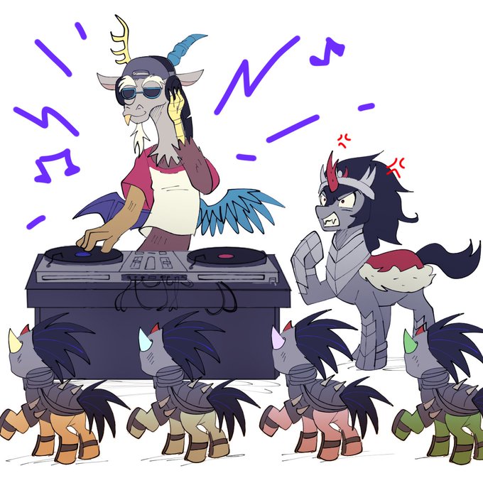 これはソンブラさんの作った洗脳軍隊の行進にクラブDJの格好をしながら縦ノリダンスミュージックで参戦するディスコードの絵 #MLP #MyLittlePony #マイリトルポニー #MLPFanart #Discord #KingSombra