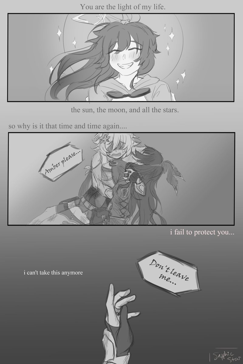 angsty lumiamber time travel au where lumine hops across various timelines trying to prevent amber's death #lumiamber #GenshinImpact #genshinimpactfanart #amber