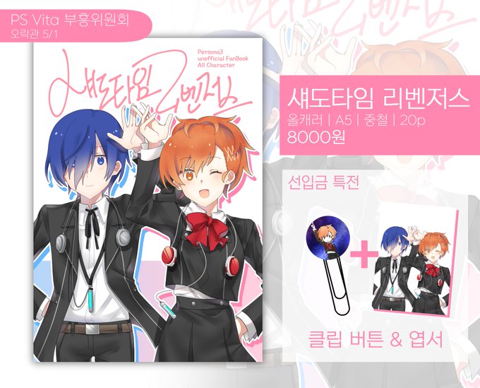 RT💙 22년 5월 1일 오락관에서 판매할 페르소나3 회지 선입금 폼입니다! 통판은 재고가 남으면 진행할 예정이며 현장에서 수령하실 수 있는 분들께서만 폼 작성해주시면 감사하겠습니다! 선입금 기간: 02-21 00:00 ~ 03-31 23:59 선입금 폼: forms.gle/Z9ZV4RmhTmJHH7… 💙RT 추첨 한 분 신간 드려요