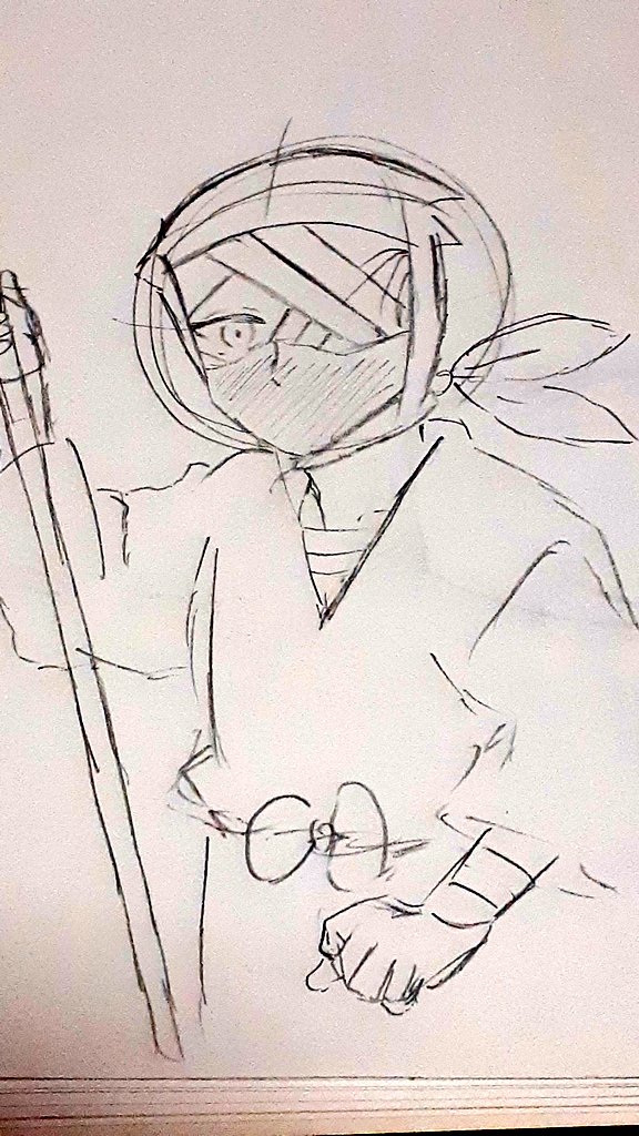 そろそろ喋らせたい所存… だが、腕が描けないから練習してる。 でも、描けずに折れる。 諦める。 このループだよなぁ… #オリ忍 #オリキャラ #イラスト