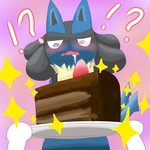 #ポケモンイラスト チョコケーキに誘惑されるルカリオ💙