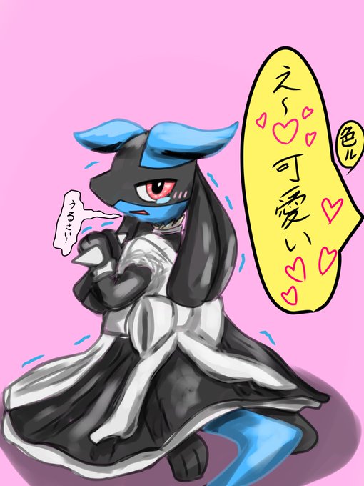 #ポケモンイラスト 無理やりメイド服着せられたルカリオ💙