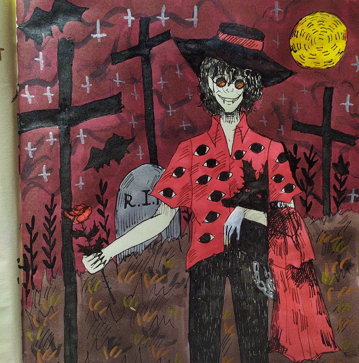 второй день вампиры, поэтому я не удержалась и омолодила деда на много тысяч лет #inktober #inktober2021 #hellsing #alukard