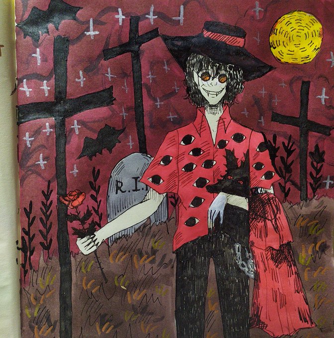 4 12 третий день венок, я не успела вчера его сделать... выглядит очень грязно и как-то... невнятно? но почему-то мне это нравится...если бы не вратый блеск бумаги, было бы вообще чудесно #inktober #inktober2021 #hxh #hunterxhunter 21/10/05 04:15