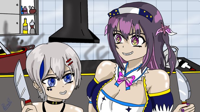 Hoy me ha apetecido dibujar a Hina y Luna cocinando con catastróficos resultados. #rurillust #misopaart