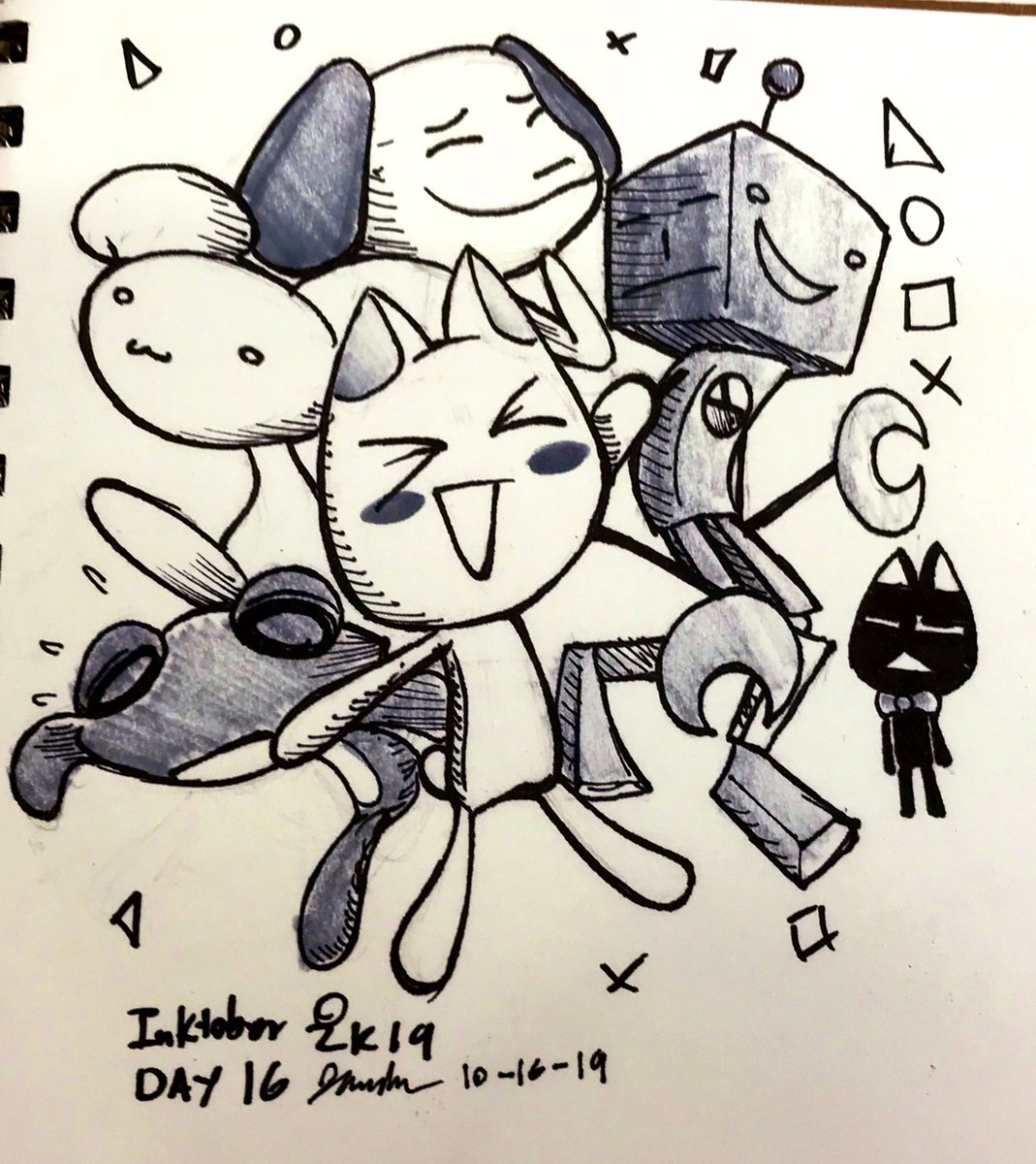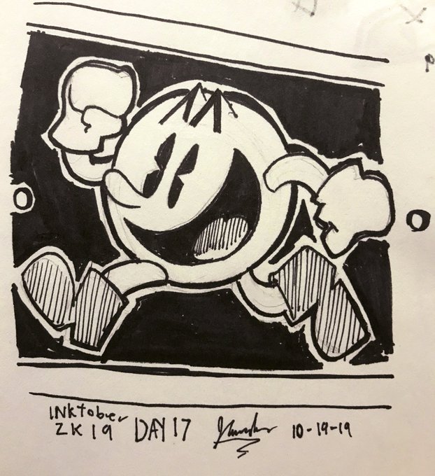 Day 17-20- a four time all star cast #Inktober2019 #Pacman #Sackboy #HumphreyBogart #kermitthefrog