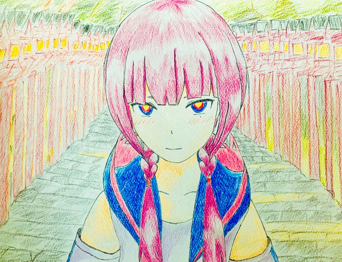17 98 過去を喰らうのMVより模写で描いてみました。 背景は適当に持ってた写真から。 #花譜 #観測者 19/08/19 06:40