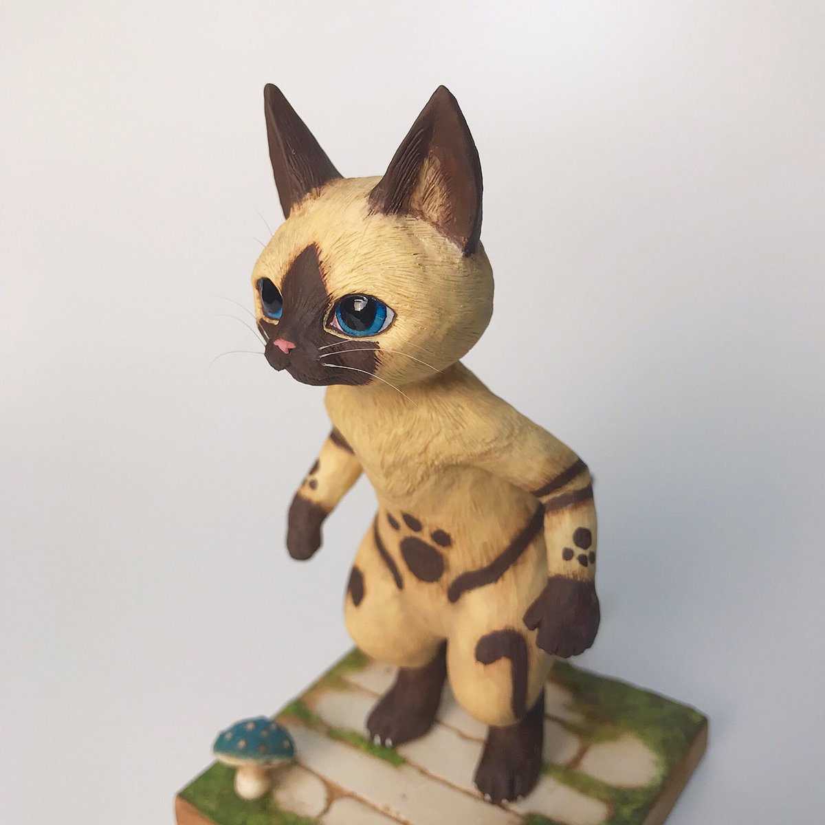38 70 展示用アイルーはベルナ村な台座にキノコ(付属)を生やしてます🍄 今回はオール筆塗りで塗装しました🎨 未塗装ガレージキット 3000円 #wf2019w #モンスターハンター #アイルー 19/02/08 01:24
