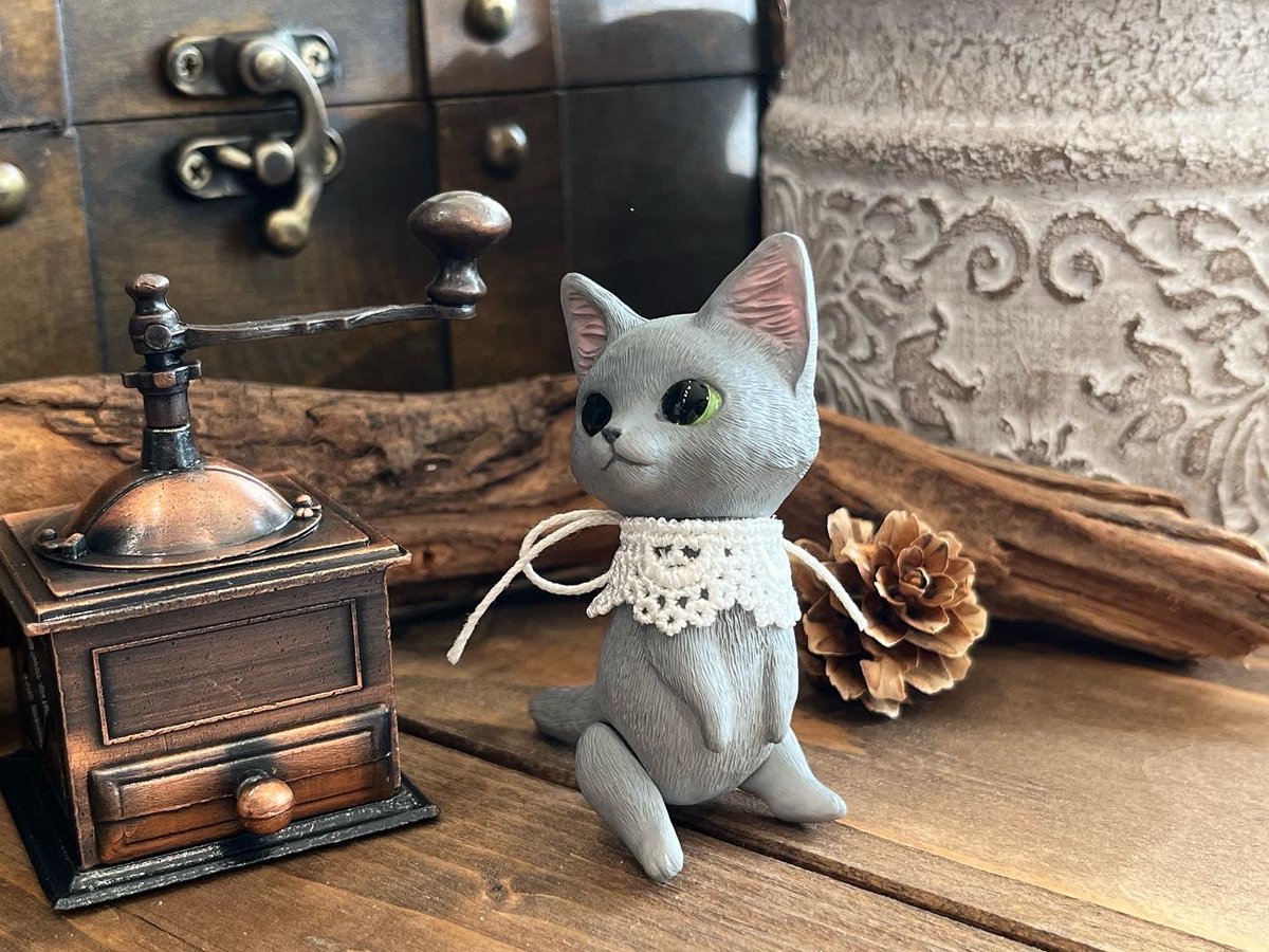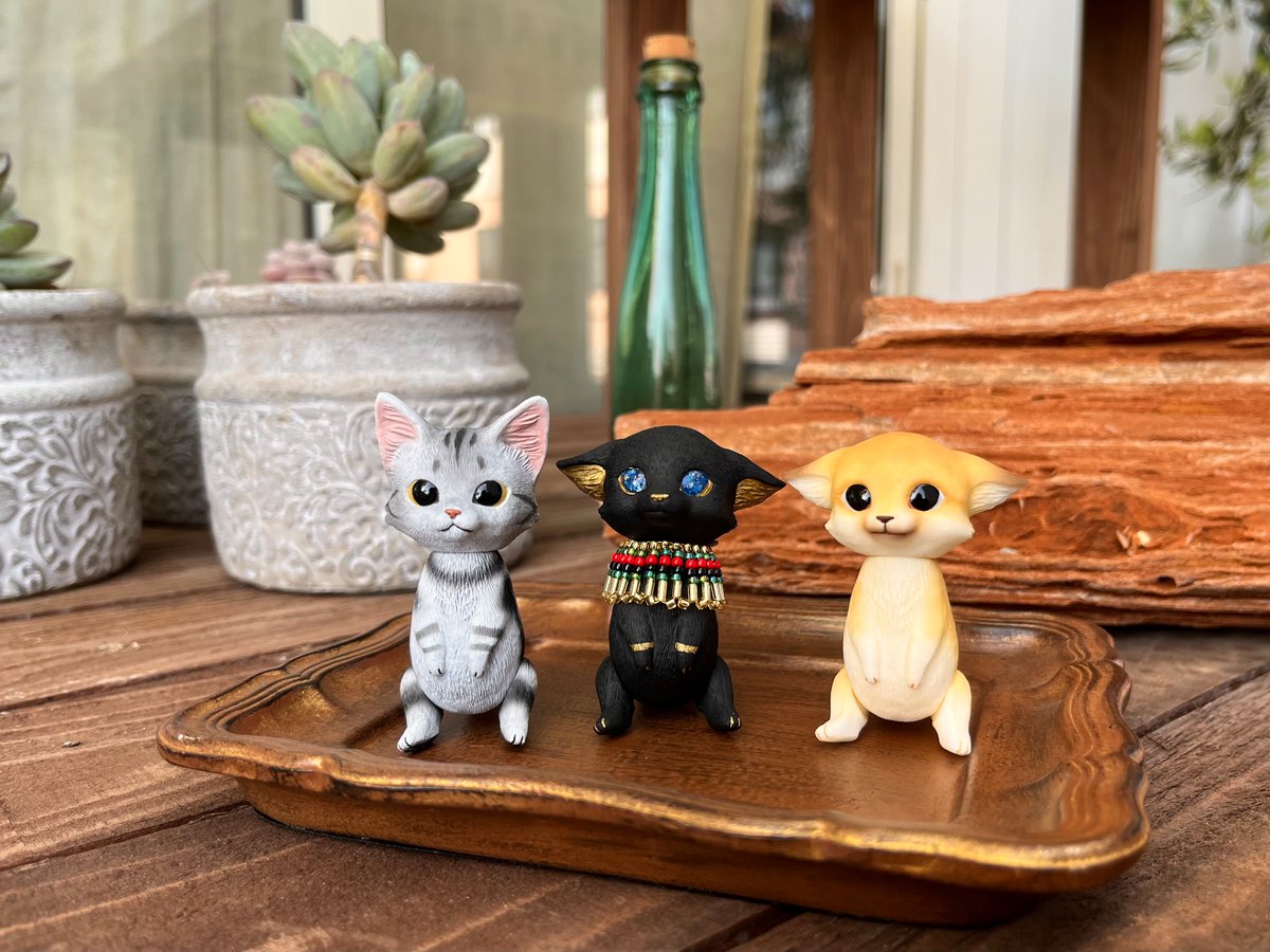 新作ドールができました🙌 「ネコのドール*ロシアンブルー」と「キツネのドール*黒狐(こっこ)」です✨ それと化け猫さんの再販も予定しております🐱🦊 12/29(木)21:00にBOOTHにて出品予定です!🛒