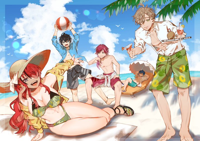 エデン組サマー!🏖 #AXIART #イロ絵す #レインの依頼書 #絵バンス #まめねことレオス