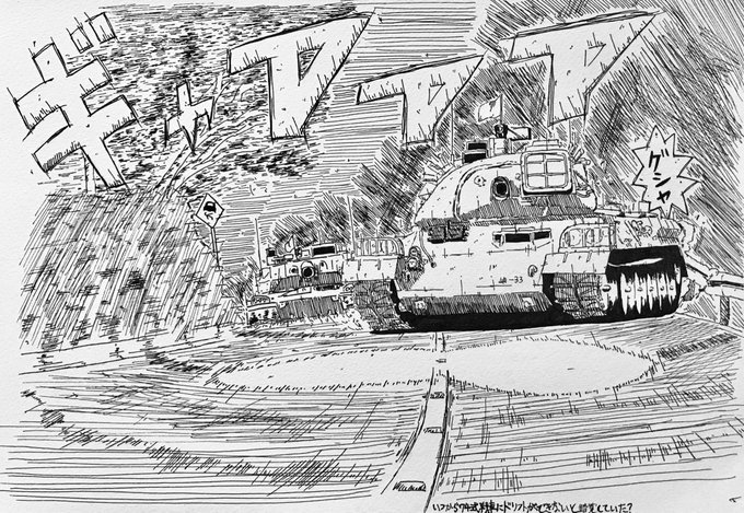いつから74式戦車にドリフトが出来ないと錯覚していた? #ペン画 pixiv↓ pixiv.net/artworks/95991…