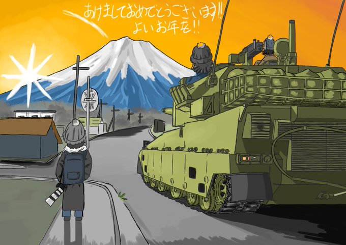 1 12 あけましておめでとうございます! 今年もよろしくお願いします! …それっぽく90式と富士山描いてみたけどよーく見たらミスとかありそう 23/01/01 06:54