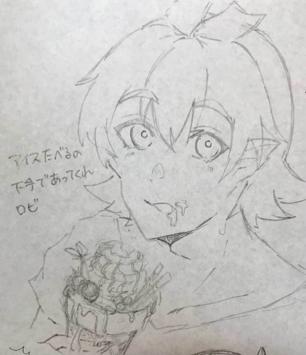 夏がもう終わるなんてって気持ち 無駄にデカいやつ買ってどんどん溶けていくアイスを食すバルス・ロビンに会いたい #魔入りました入間くん #魔入間 #イラスト #絵柄が好みっていう人にフォローされたい