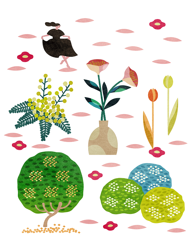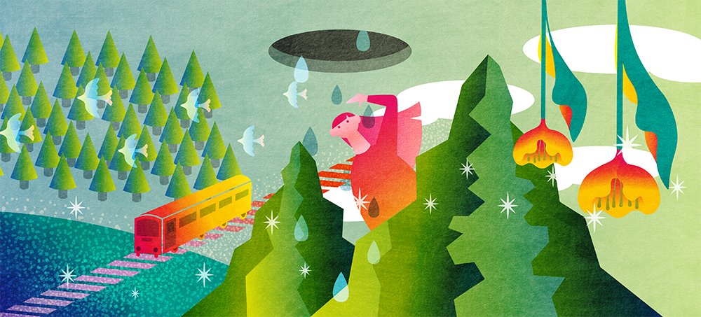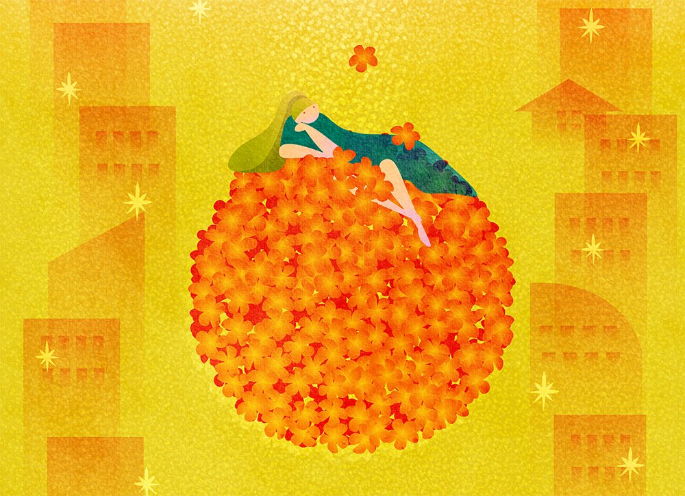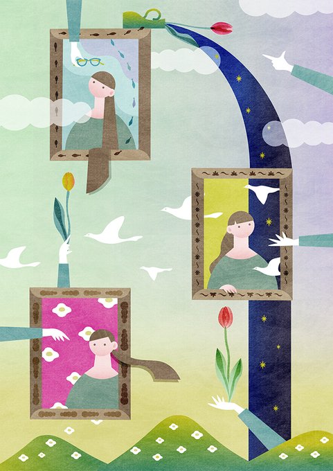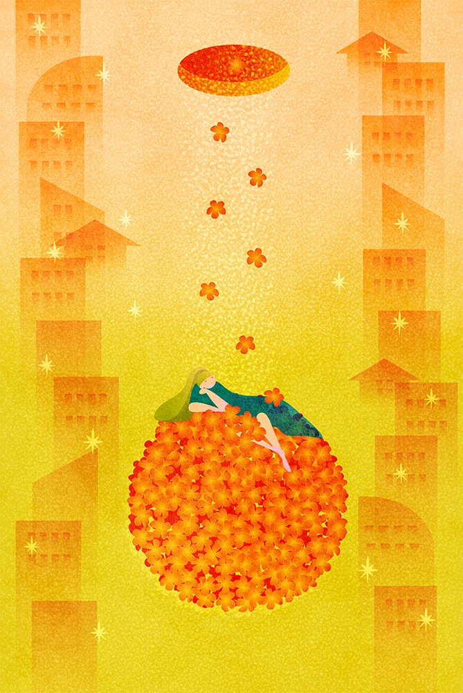 四季をイメージしたイラストです。#イラストレーションの日2021 に応募したイラストのひとつは秋のイラストをトリミングしました。やはり縦長ばかり。横長も描く。#イラスト #イラストレーター