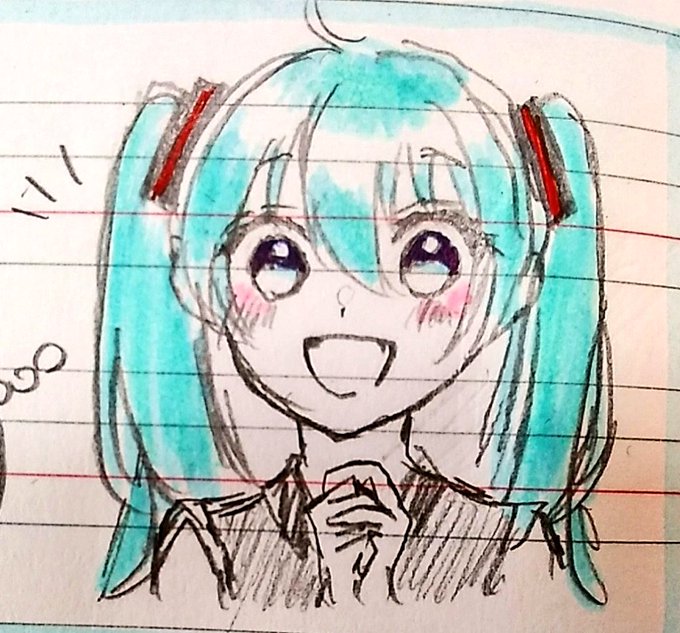 パァァァ!!✨ って表情が明るくなる感じが好き #初音ミク #初音ミクイラスト #イラスト #落書き