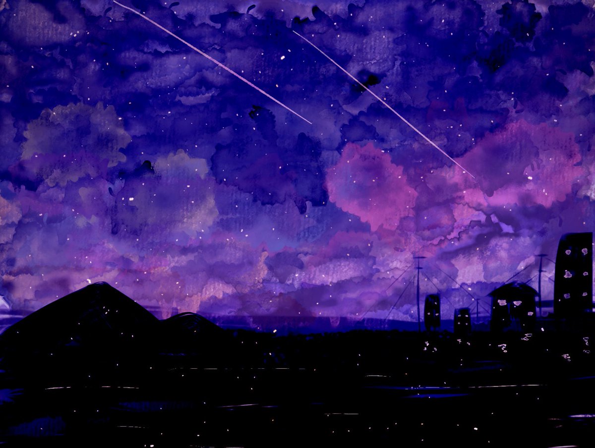 紫陽花カラーの星空🌃 #イラスト #水彩