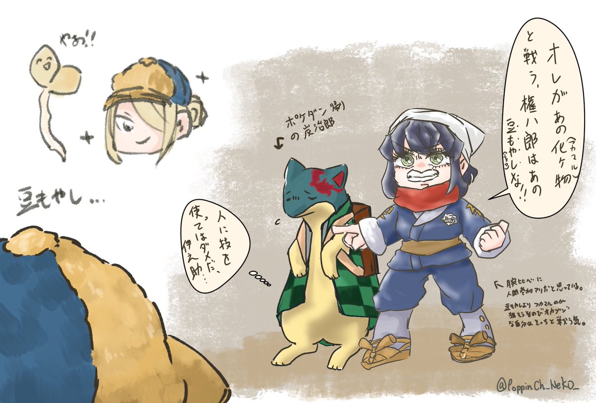 夕飯に豆もやしが出てからウォロさんにしか見えなくなった件について。 伊之助がヒスイ地方に落ちたら絶対楽しい妄想🐱 テスト?知らない子ですね… #らくがき #ポケモン絵描きさんと繋がりたい #レジェンズアルセウス #鬼滅の刃イラスト