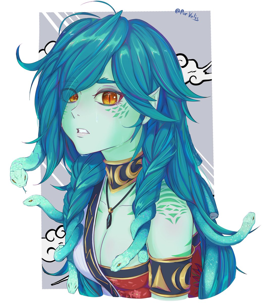 Finished up a character concept. This is Demena Sukiru. A Yuan-Ti priestess that's within one of the more eastern-inspired regions of my DM's world. #dndart #dnd #DnDcharacter #homebrew #dungeonsanddragons #digitalart #originalcharacter