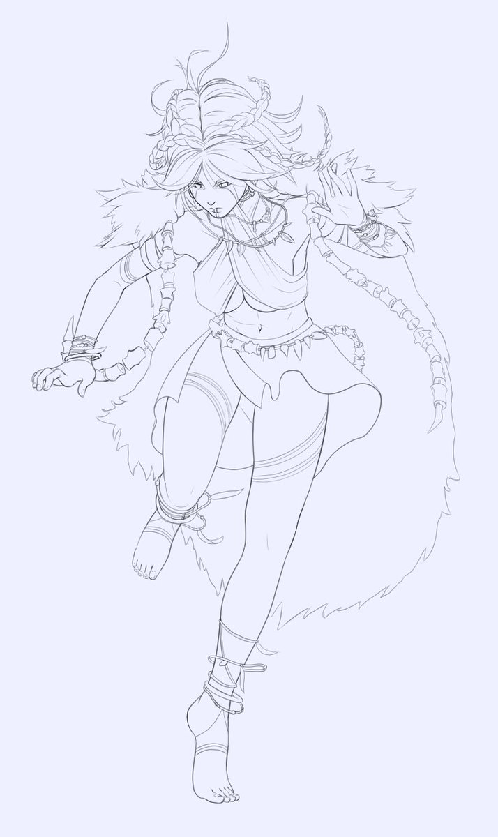 Progress on a shamanistic dancer concept for a tribe within a continent in my dm's world. Will try to draw some more tid bits of her culture later on. #DnD #dndart #DnDcharacter #homebrew #dungeonsanddragons #digitalart #originalcharacter