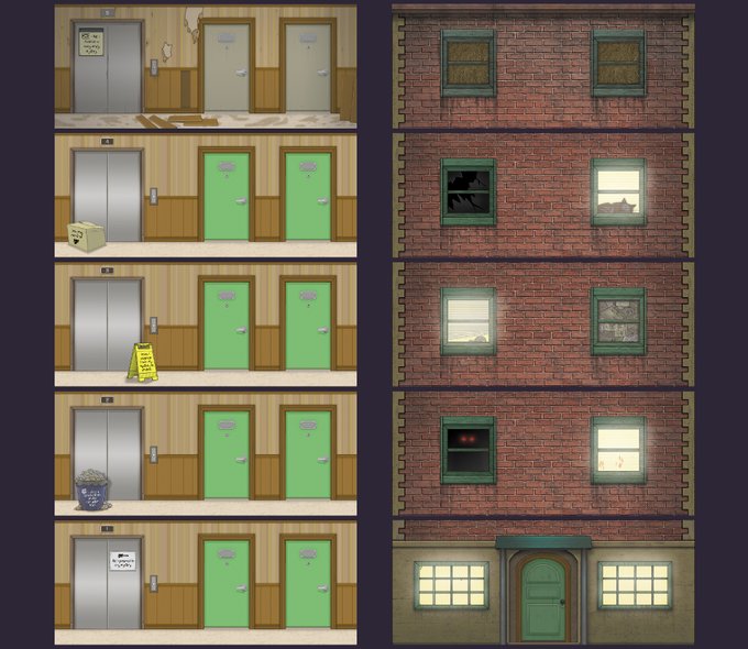A peek under the Floor boards in Strange Nightmares. The backs are designed to look like the apartment building from the outside. StrangeNightmares.com