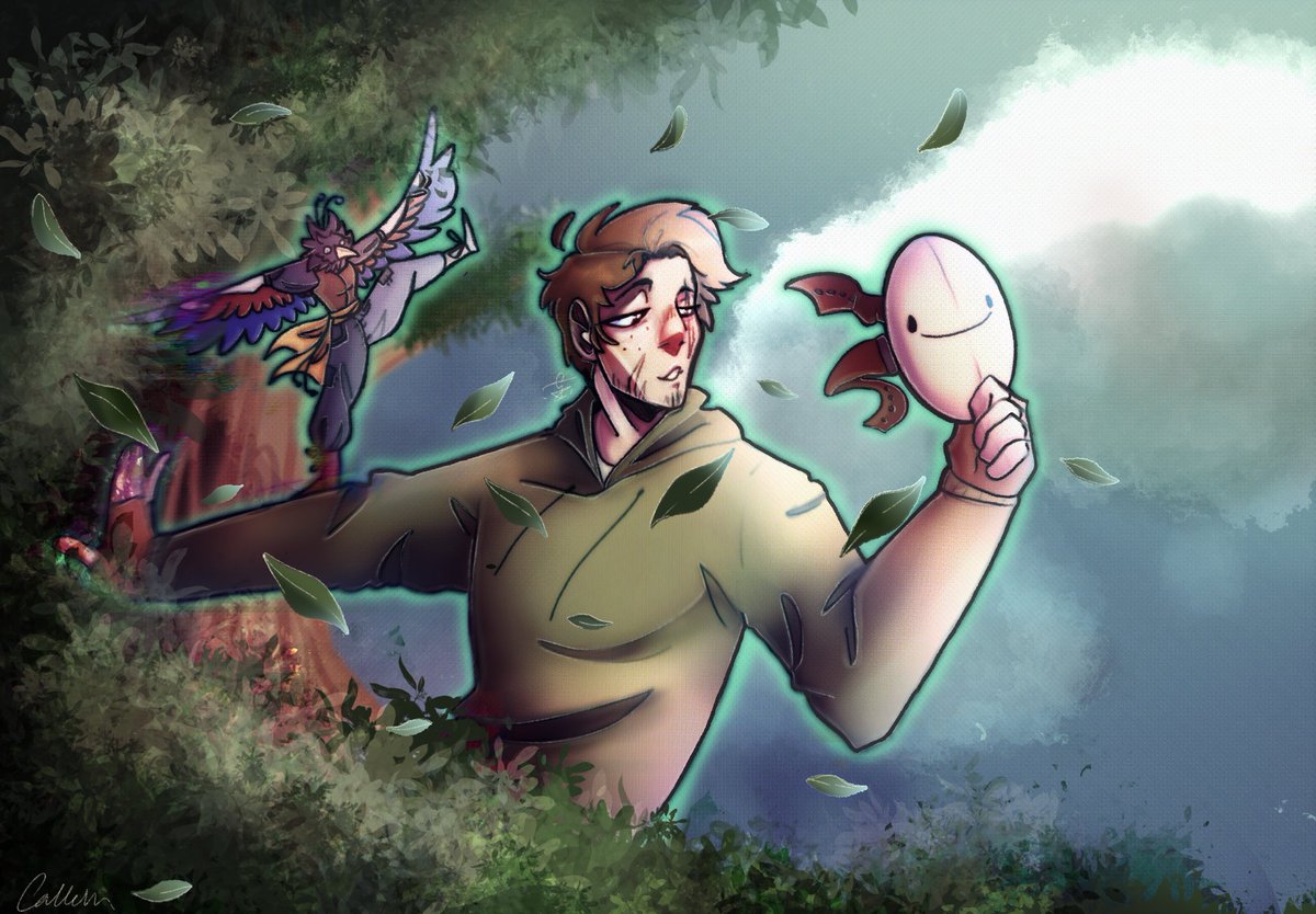 AE I dId a thing ( the background is um bad but rip ) ( also birds are hard to draw so I drew my oc :( @friccafracc #fricca20kDTIYS #dreamfanart #dreamsmpfanart #fanart