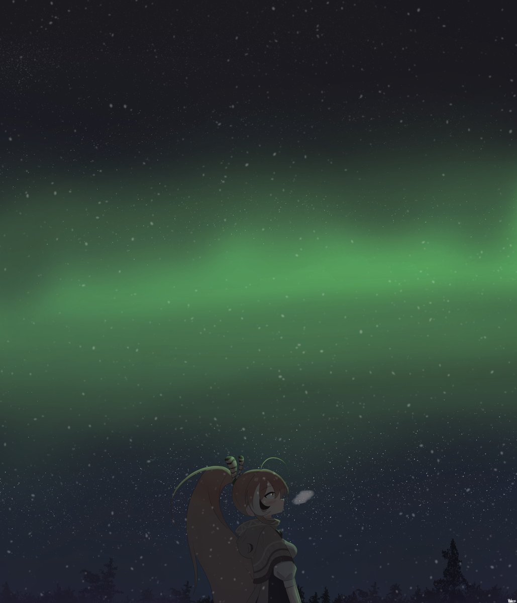 Maybe it's a bit of a faux pas to simply edit a picture you've already done, but I legit shed some tears seeing the Northern Lights pop up in the Christmas collab. Thought I'd do a version with it. #drawMEI #nanashimumei