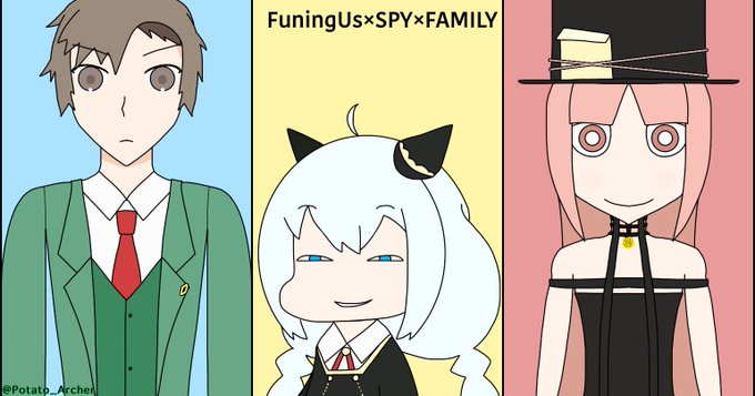 #ふにん画す 夢の中のお告げが「ジローさんと多々鷹さんとけむりさんでSPY×FAMILYパロを描け」と告げてきたので描きました! よく似合いますね! ニコニコ静画seiga.nicovideo.jp/seiga/im109664…