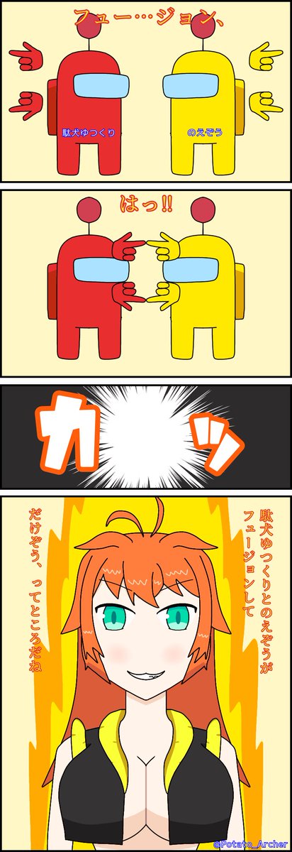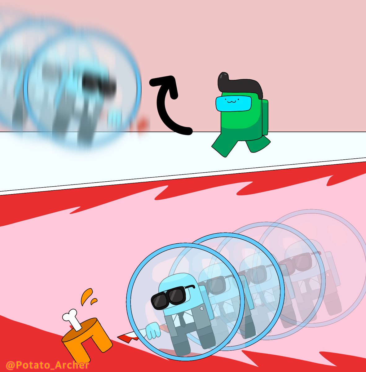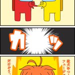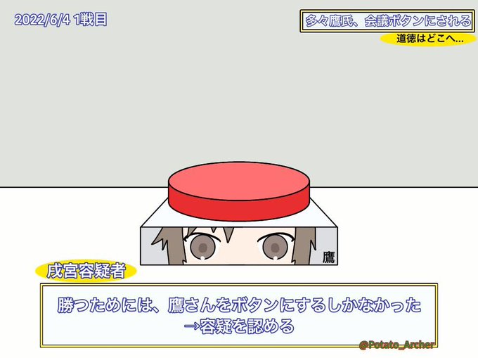 #ふにん画す 6/4の回、1戦目においてカタタタキ多々鷹さんが戌宮さんによって会議ボタンにされた(鷹さんをキルして即セルフ通報)ところを描きました! ニコニコ静画seiga.nicovideo.jp/seiga/im109705…