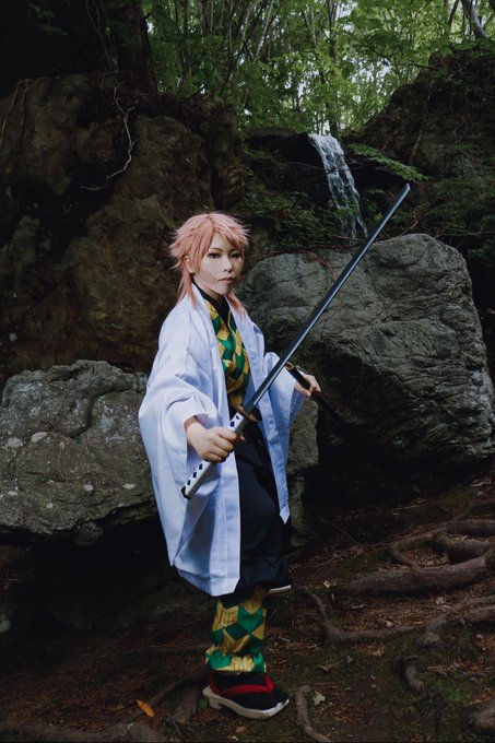 【コスプレ注意⚠️】 錆兎コス うわん😭これも一緒に載せたかったのにつけ忘れてた😭😭😭 カメラは猫さん( @throat__911 )