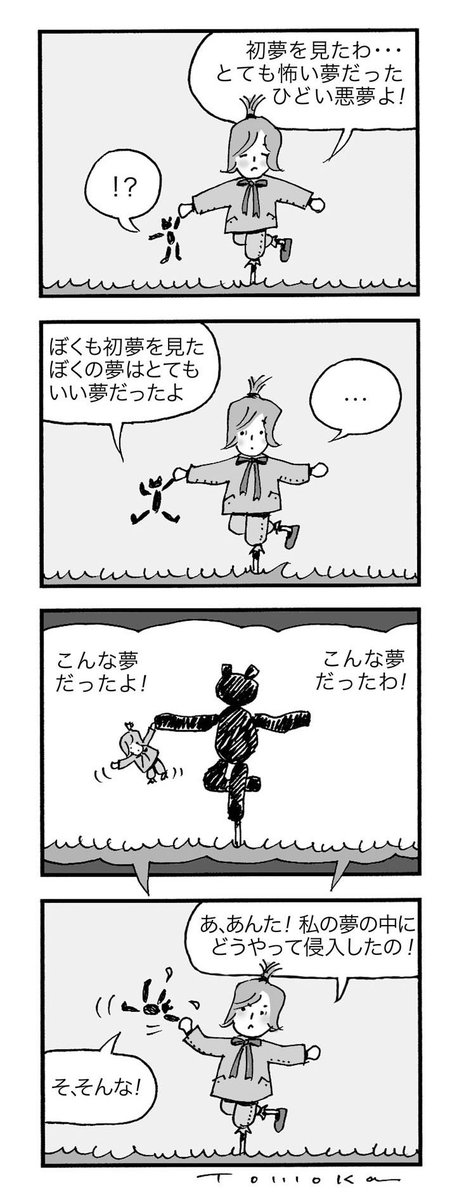 1 10 かかしのポッティー 「同じ夢」 再掲。すっとぼけたカカシたちの寸劇。続き物もあるので気になったら以前のも見てね! #4コマ漫画 #イラスト #マンガ 23/01/03 07:00