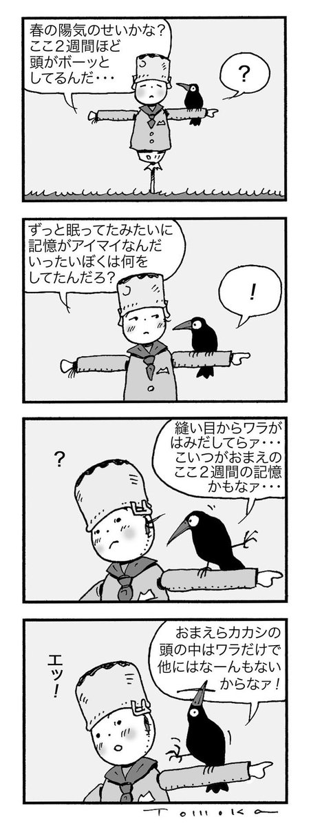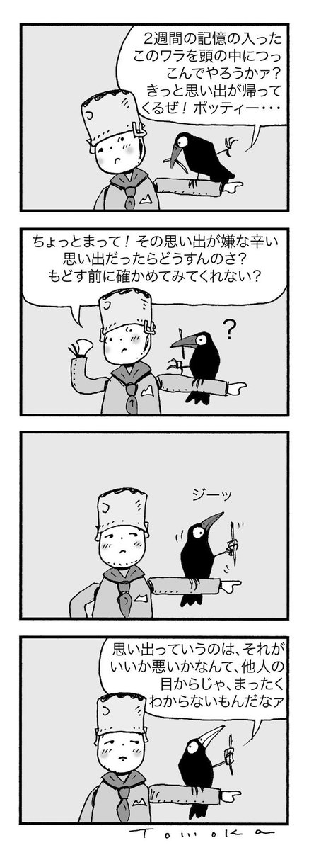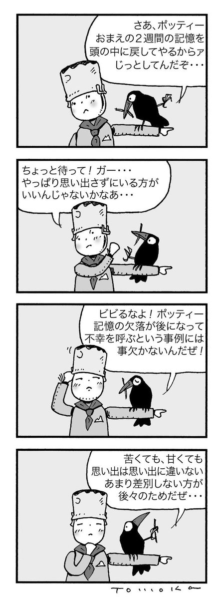 0 2 かかしのポッティー 「思い出は・・・2」 再掲。すっとぼけたカカシたちの寸劇。続き物もあるので気になったら以前のも見てね! #4コマ漫画 #イラスト #マンガ 23/03/28 07:54